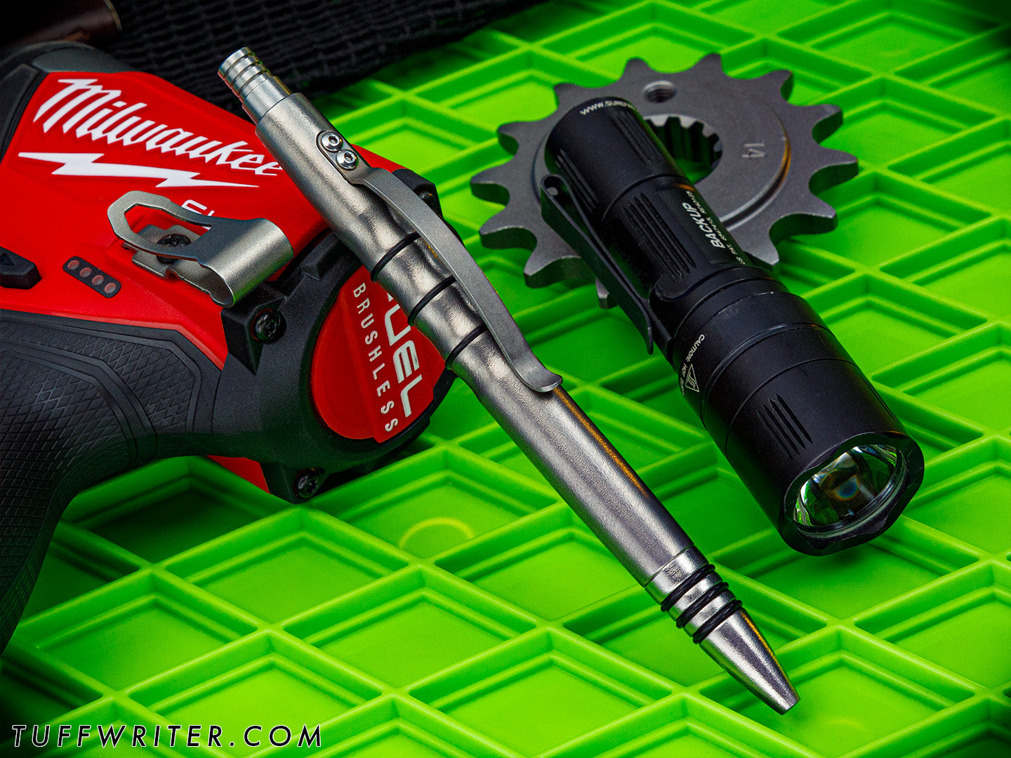 Heavier than Aluminum, but still in that 'sweet spot' for most users. Titanium has the right weight to give your pen strokes purpose, without tiring you hand out by the second paragraph.
